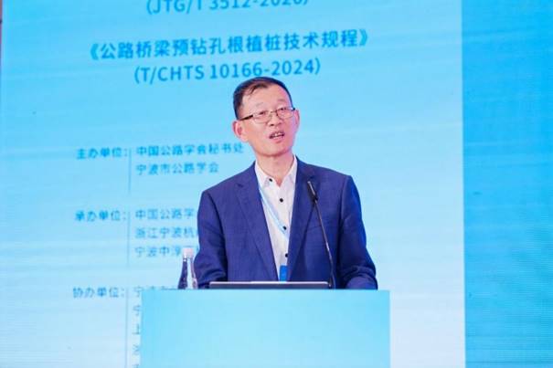 寧波市交通運輸局黨組書記、局長胡海達致辭時表示,寧波作為長三角南翼交通樞紐,近年來在港口集疏運、高速公路網(wǎng)和城市快速路建設中取得了顯著成就。基樁工程作為橋梁與地基建設的核心環(huán)節(jié),其設計、施工與檢測的標準化水平,直接關系到工程質(zhì)量和行業(yè)可持續(xù)發(fā)展。而預鉆孔根植樁技術作為綠色建造的創(chuàng)新成果,在減少碳排放、節(jié)約資源、提升施工效率方面優(yōu)勢顯著。寧波作為典型的軟土地區(qū),這一技術的推廣應用,將有效破解復雜地質(zhì)條件下的施工難題,助力“雙碳”目標在交通領域的落地。
