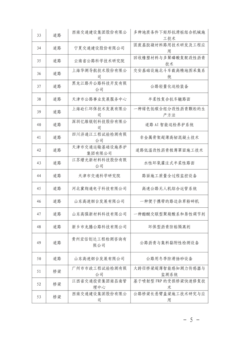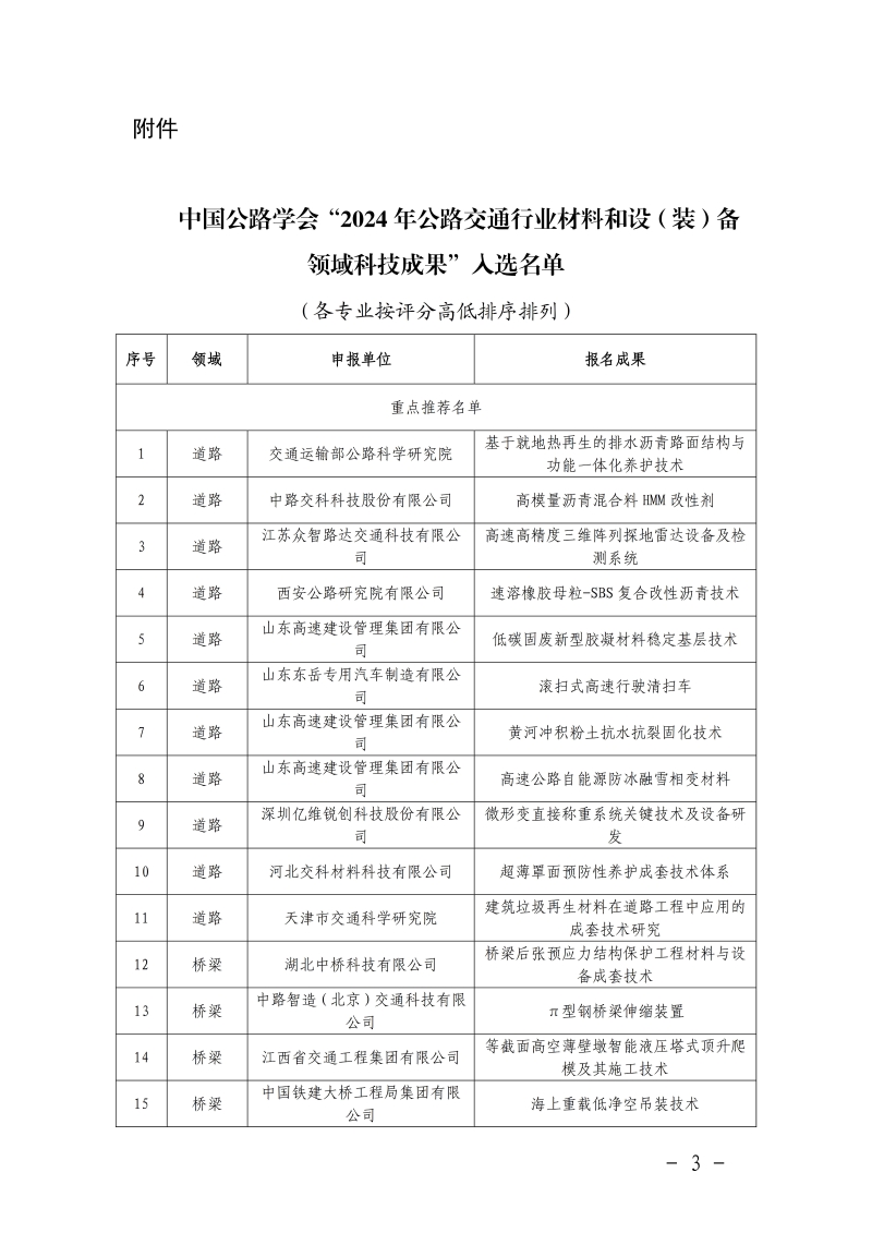 點擊查看公示文件:2024年公路交通行業材料和設(裝)備領域科技成果 征集入庫結果公示.pdf