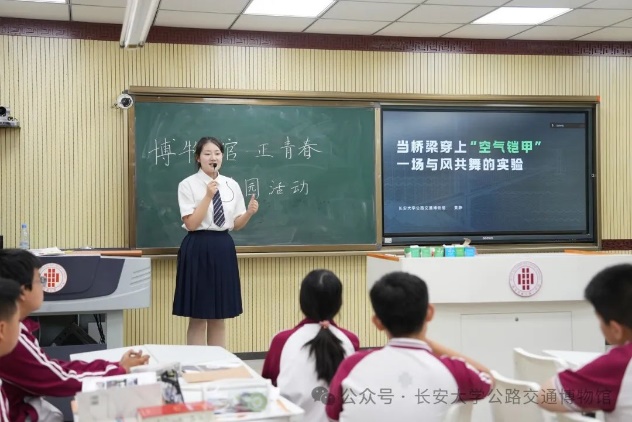 為持續推動公路科技知識傳播,深化科普成效,5月14日,公路交通博物館聯合陜西省歷史博物館走進西安市曲江第一中學,開展“博物館·正青春”科學使者進校園活動。寇婷葦老師以《橋梁的秘密:從古至今的結構奧秘》為題,深入講解了橋梁的歷史演變、結構原理以及現代橋梁工程技術;大學生志愿者張敔婷、冶芳芳、黃靜、楊博然、閆佳怡等從智慧路面材料、橋梁抗風、橋梁美學、大數據等方面,介紹了公路交通發展中的前沿技術與創新。另外,張曉航老師開展“青年學生是志愿服務與科學普及工作中的生力軍”主題宣講,呼吁更多青年學生投身科普事業,為科學普及工作的可持續發展貢獻力量。