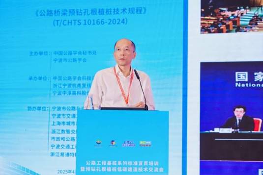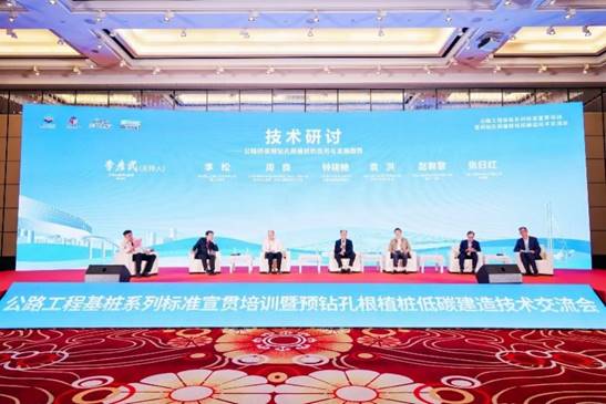 中國公路學會翁孟勇理事長致辭時表示,標準作為工程設計、施工、驗收及運營過程中應遵守的準則和依據,對保障和促進交通高質量發展方面發揮著不可替代的作用,中國公路學會始終高度重視標準的編制、應用工作。基樁技術是工程質量的基石,標準體系是百年大計的保障,預鉆孔根植樁以“靜”“凈”為主要特點,工程質量可靠、環保效益顯著,符合預制化、裝配化的發展方向。在交通運輸高質量發展和“十五五”新時期交通運輸的背景下,要以標準提升引領發展動力、以標準管理創新夯實發展基礎,加快打造與交通強國建設相適應的標準體系,推動標準進步,為交通運輸高質量發展提供強有力的支撐引領。