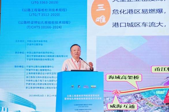 “四月甬城花未休,繽紛五彩入明眸”,春日的寧波,綠意盎然、熱情如炬。4月28日,由中國公路學會秘書處、寧波市公路學會聯合主辦,中國公路學會科技評價中心、浙江寧波杭甬復線三期高速公路有限公司、寧波中淳高科股份有限公司承辦,寧波市公路與運輸管理中心、寧波市交通工程管理中心、上海市城市建設設計研究總院(集團)有限公司、浙江數智交院科技股份有限公司、市政和公路工程工業化裝配化產業聯盟、寧波交通工程建設集團有限公司、浙江易通特種基礎工程股份有限公司共同協辦的公路工程基樁系列標準宣貫培訓暨預鉆孔根植樁低碳建造技術交流會在港城寧波召開,來自全國各地從事公路交通管理、設計、施工、養護單位的近300位科研工作者與工程技術人員參加會議。